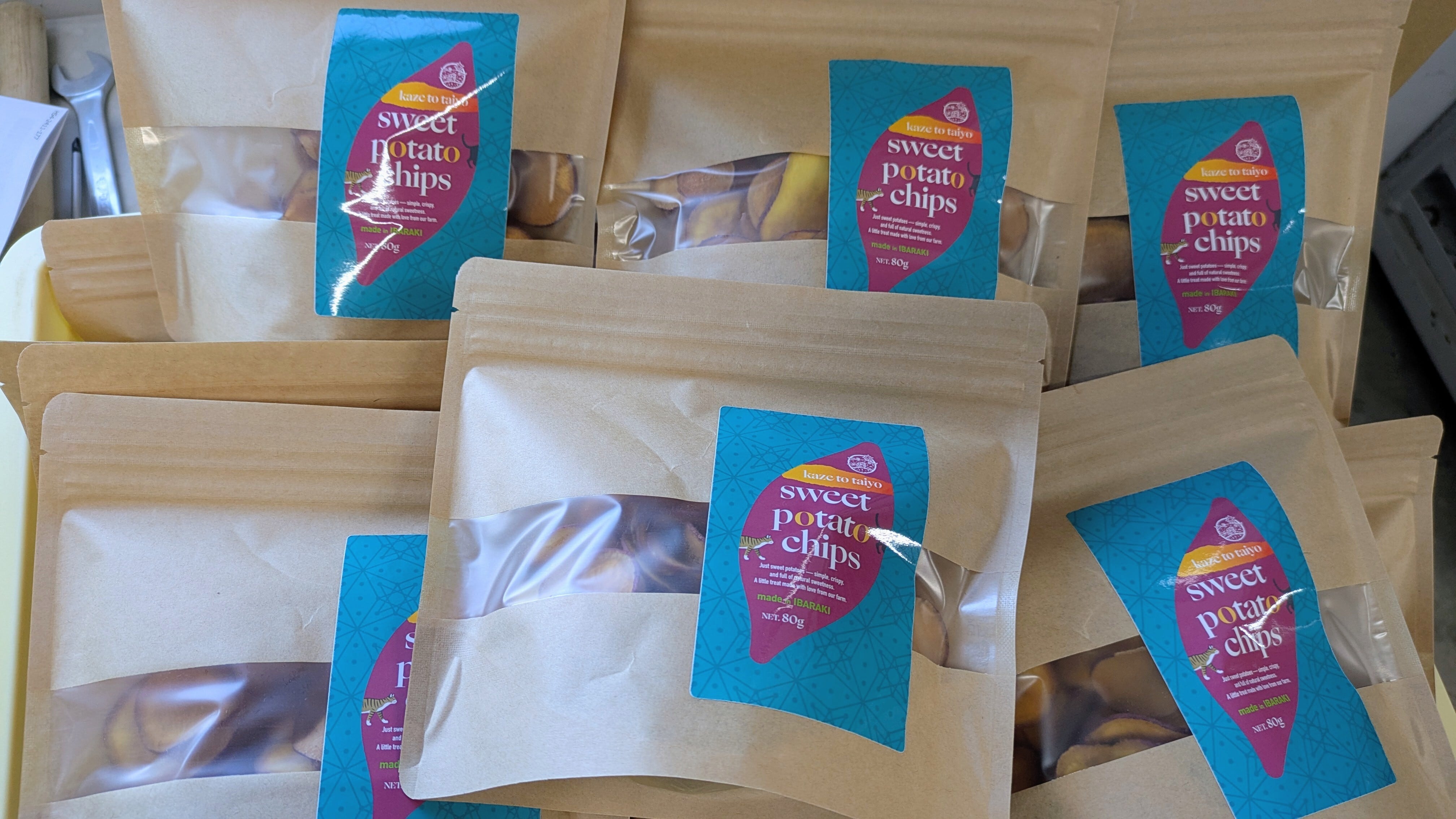 自家栽培した茨城県那珂市産のさつまいもを厚くスライスし、そのまま素揚げしています。紅はるかと栗かぐやの2種類入っています。