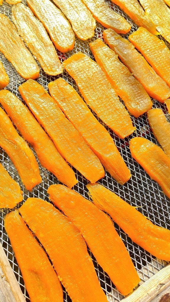 茨城県那珂市産いずみ13号の平干し。収穫量が他品種に比べて極端に少なく、近年栽培する農家も極端に減った希少品種。その味わいは、紅はるかが砂糖とすればいずみは黒糖。しつこくない甘みと後からくる黒糖のようなコクで食べ飽きないのが特徴です。