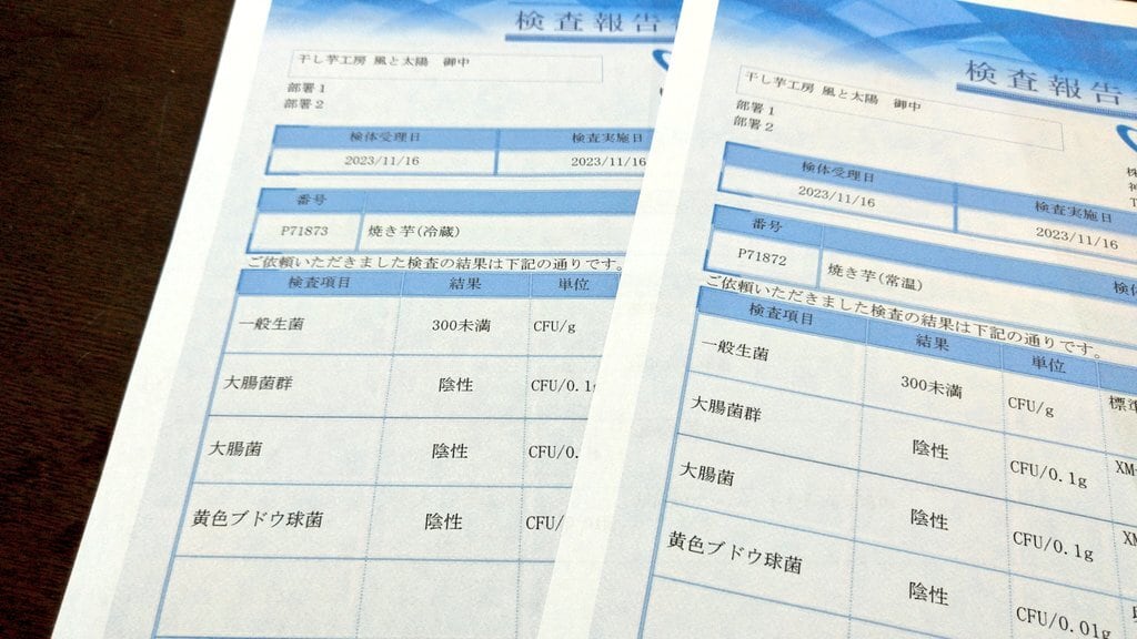 干し芋協議会三ツ星認定の加工場で、食品衛生管理責任者のもと製造しています。保健所届出済。検査センターにて製造からお届けまでの生菌率検査済(項目全て問題なし)